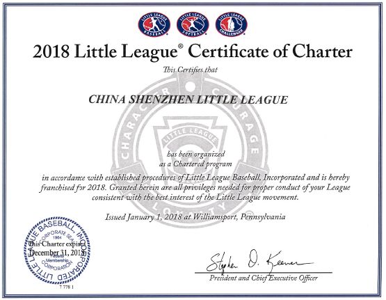 (Little League总部颁发深圳赛区证书)
